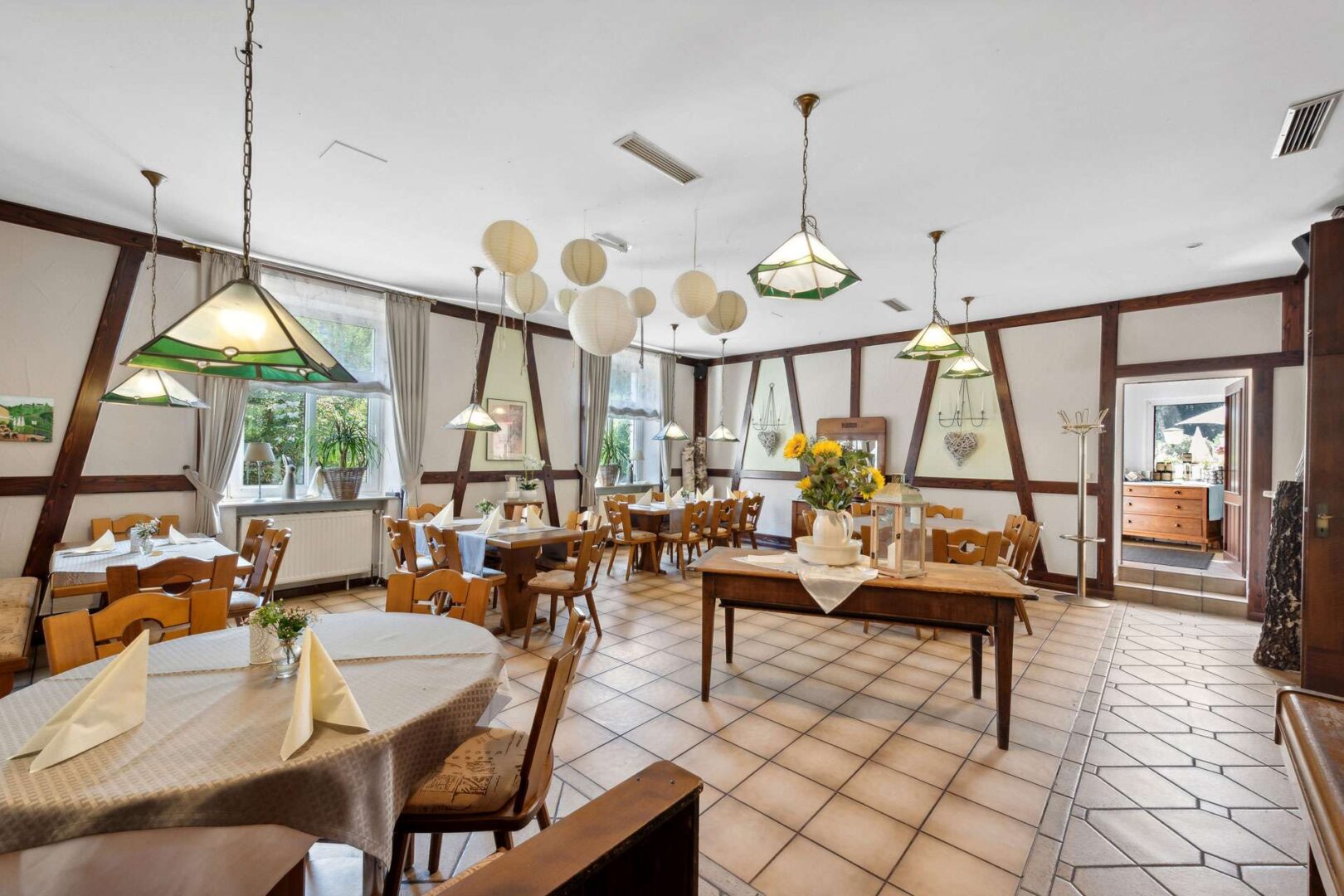 Die Gesamtnutzfläche beträgt ca. 541,2 m². Herzstück ist der großzügige Gastraum mit einer Bestuhlung für rund 80 Gäste im Innenbereich. Ergänzt wird dieser durch eine großzügige Außenterrasse, die Platz für weitere ca. 60 Sitzplätze bietet und insbesondere in den wärmeren Monaten zusätzliche Nutzungsmöglichkeiten eröffnet. Neben den gastronomischen Flächen stehen verschiedene Neben-, Lager- und Funktionsräume zur Verfügung.
