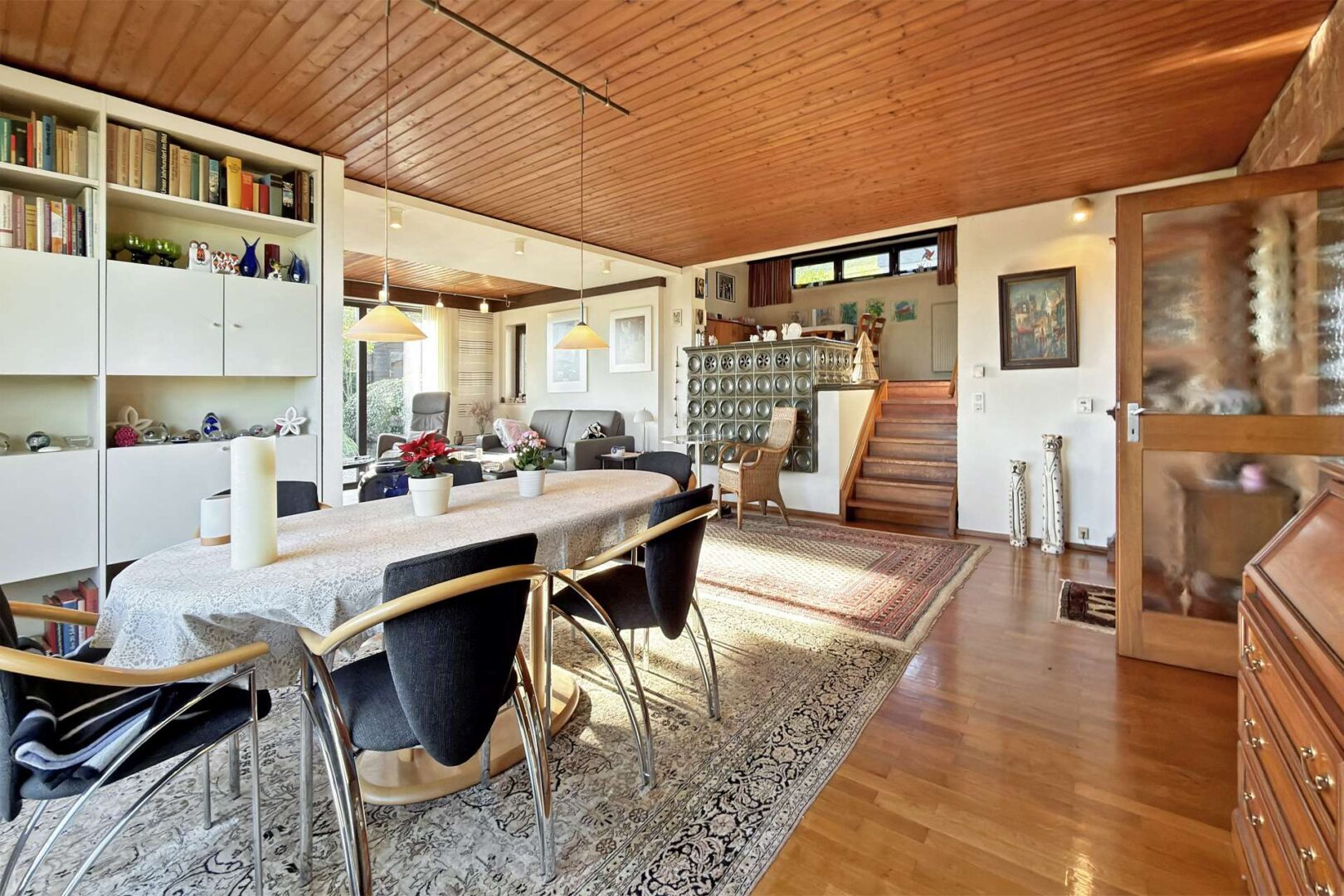 Rechter Hand vom Wohnbereich gelangen Sie über eine Treppe in ein offengehaltenes Staffelgeschoss. Hier findet sich Platz für ein zweites Esszimmer oder ein Lesezimmer.