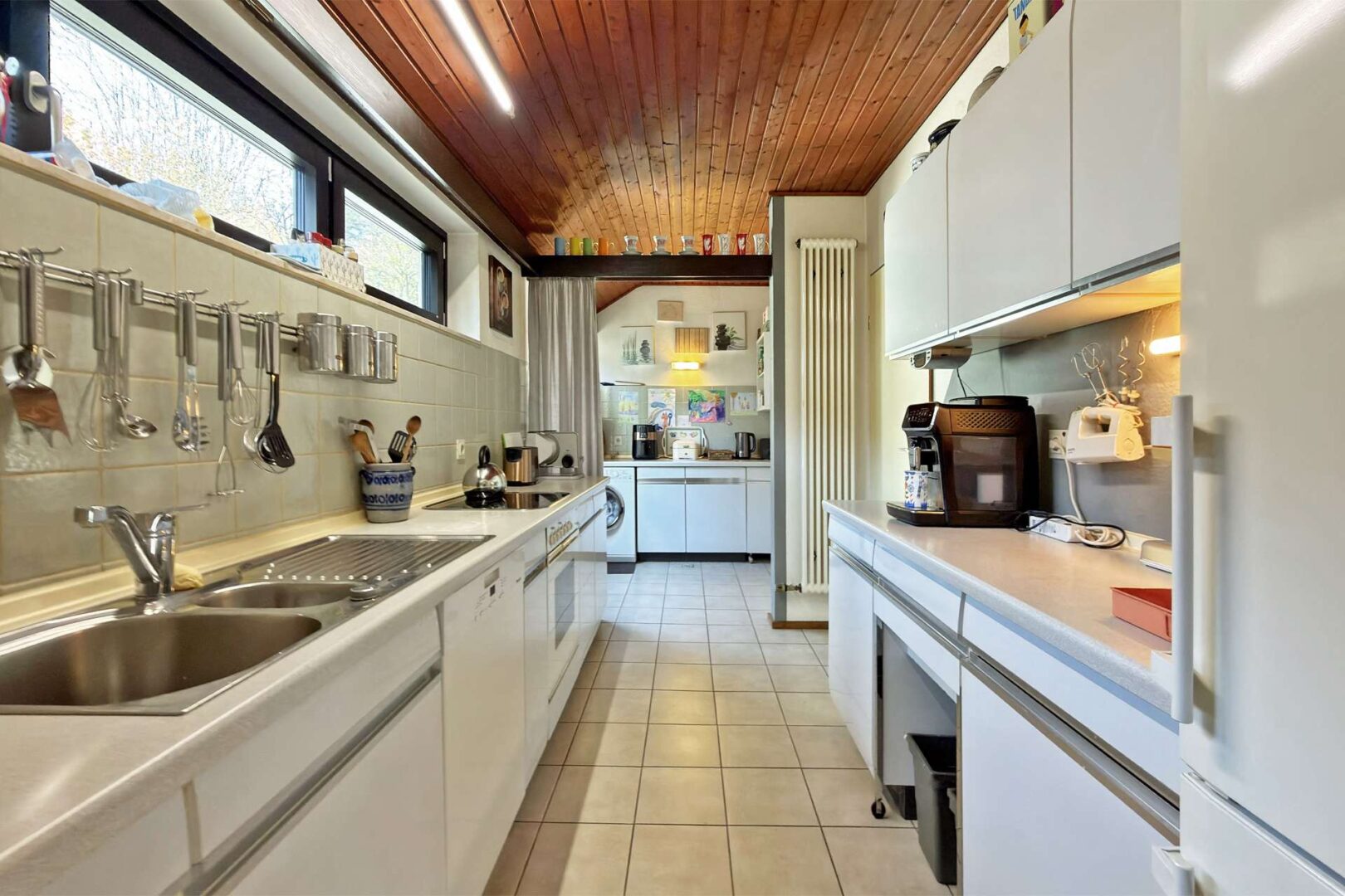 Weiter gelangen Sie aus dem zweiten Esszimmer in die großzügige, separate Einbauküche.