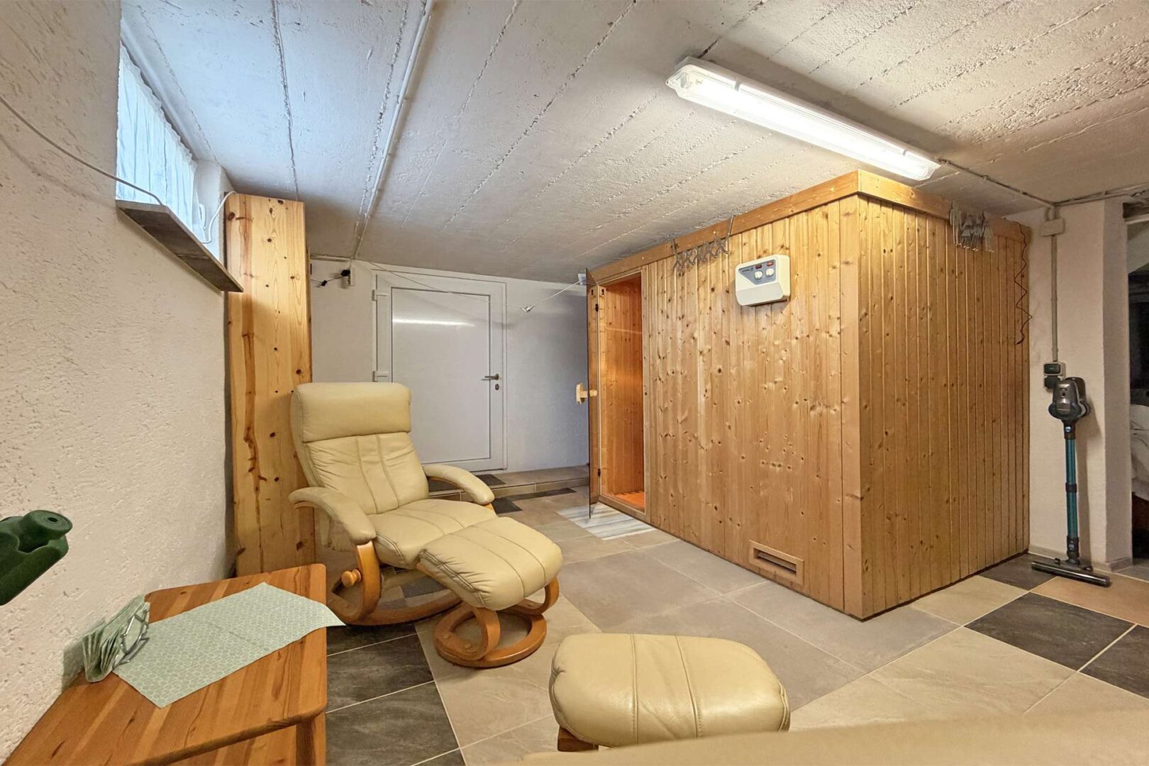 Über eine weitere Treppe gelangen Sie in den großen Speicher, der sich ideal als praktische Nutzfläche eignet. Das Gebäude ist voll unterkellert. Im Keller erwarten Sie großzügige Lagermöglichkeiten für Vorräte, ein Wasch- und Trockenraum, ein Heiz- und Technikraum sowie als besonderes Highlight ein separater Wellness- und Saunabereich.