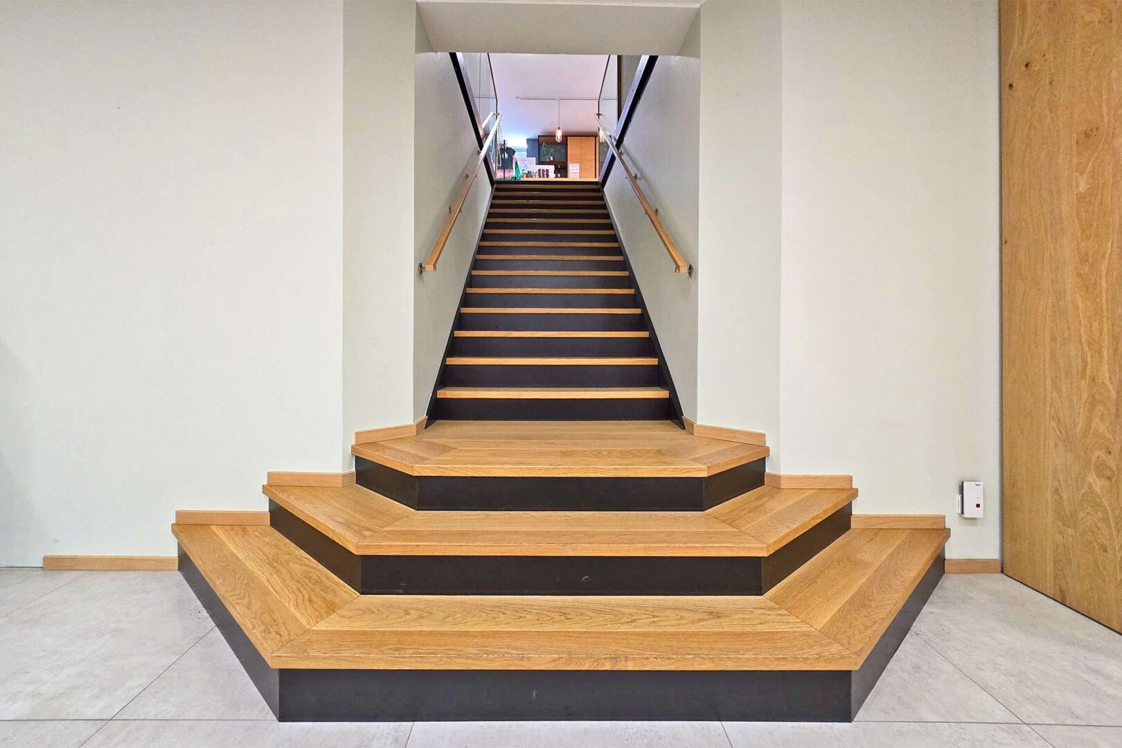 Die großzügige Ladenfläche erstreckt sich über insgesamt ca. 271 m², verteilt auf das Erdgeschoss und ein hochwertig ausgebautes Kellergeschoss. Eine rund 15 Meter breite Schaufensterfront sorgt für eine exzellente Außenwirkung und optimale Präsentationsmöglichkeiten. Der ebenerdige Zugang über eine Rampe garantiert barrierefreien Eintritt in das Erdgeschoss und unterstreicht die moderne, kundenfreundliche Gestaltung des Objekts.
