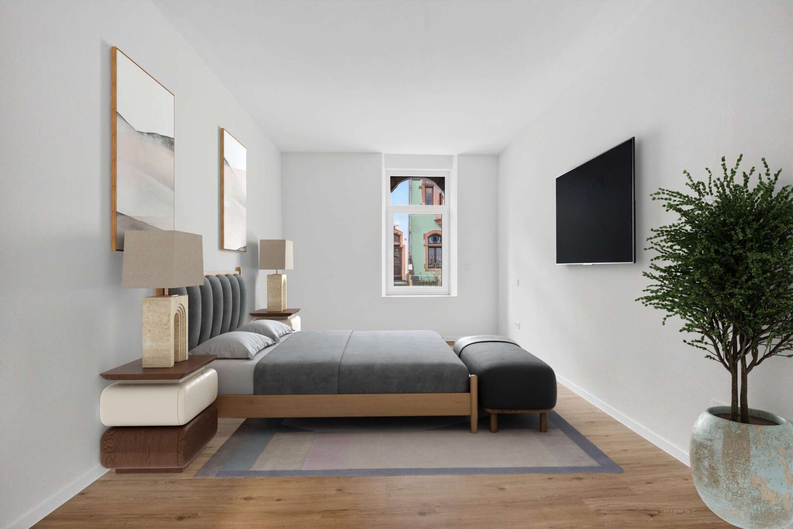 Diese stilvoll kernsanierte 3-Zimmer-Wohnung im Erdgeschoss kombiniert moderne Architektur mit dem wohnlichen Flair eines Altbaus. Der klar strukturierte Grundriss umfasst drei separate Räume: ein helles Schlafzimmer (ca. 15 m²), einen einladenden Wohnbereich (ca. 17 m²) sowie den großzügigen Koch- und Essbereich. (ca. 18 m²).