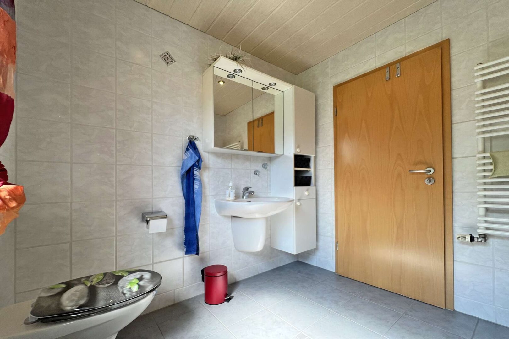 Das Badezimmer im OG verfügt über ein WC, ein Waschbecken und Tageslicht.