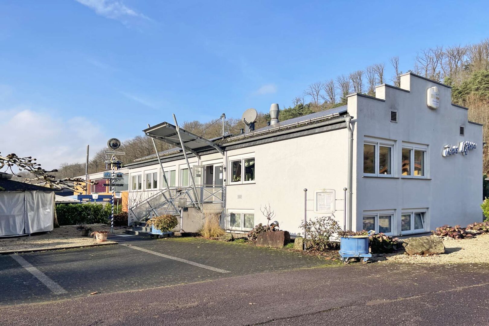 Zum Verkauf steht ein repräsentatives Gewerbeobjekt mit integrierter Betreiberwohnung in äußerst gut sichtbarer Lage an der Ortseinfahrt von Mettlach im Saarland – ideal für Gastronomen oder Investoren.