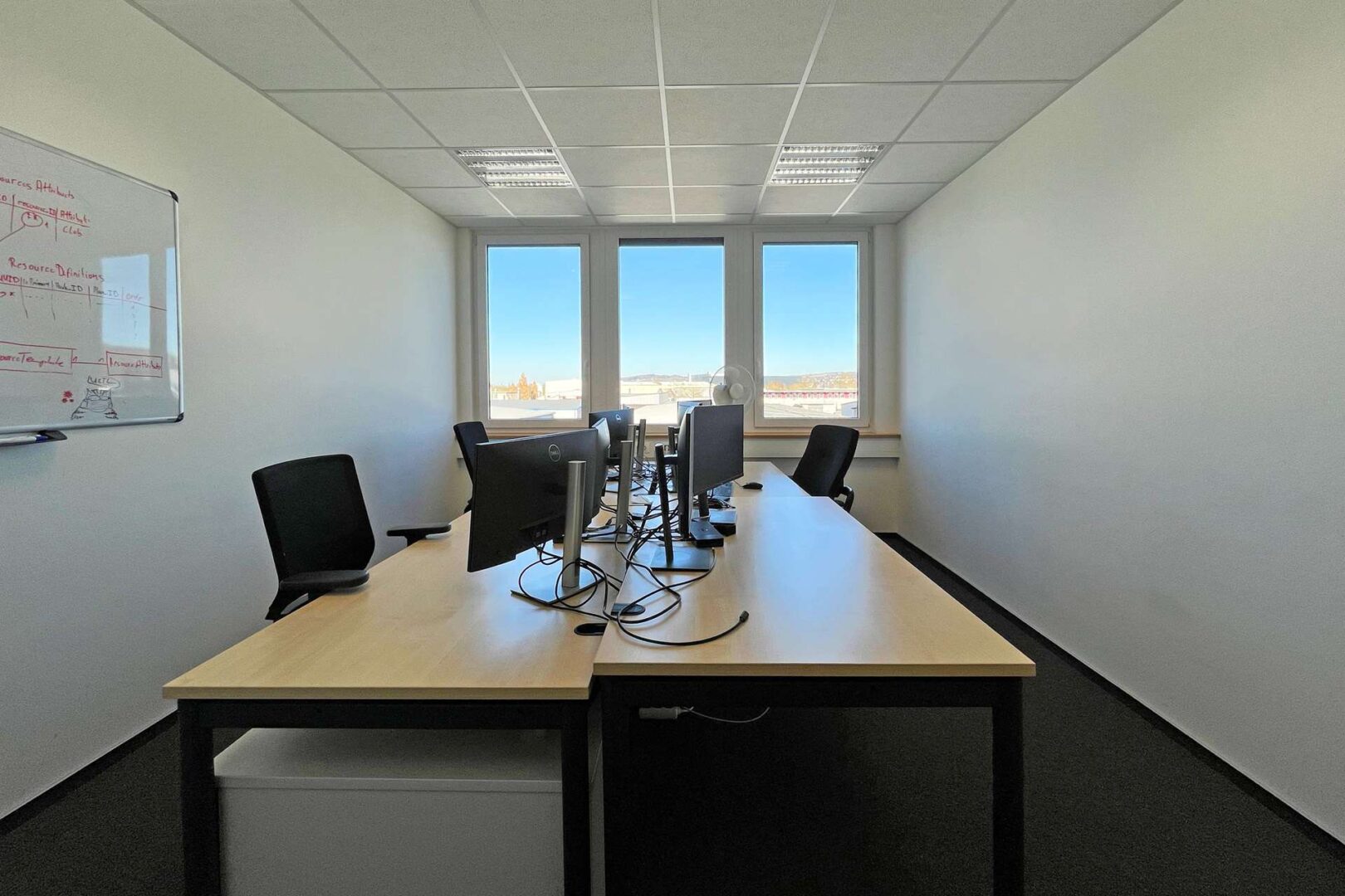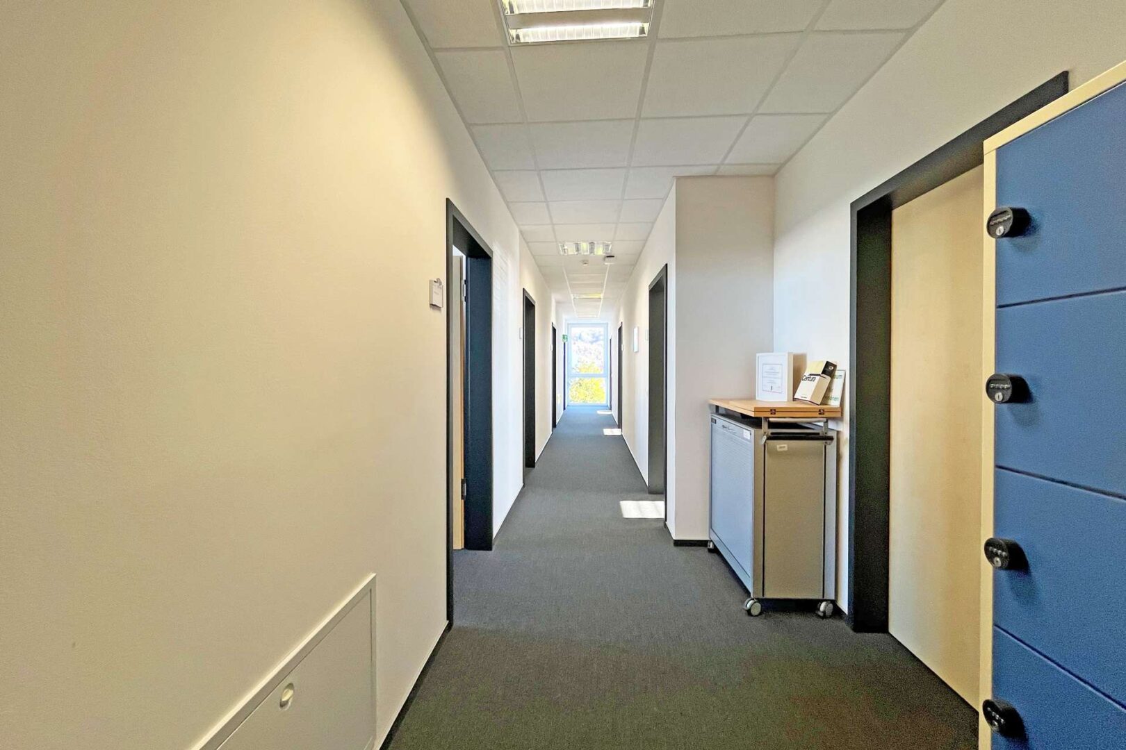 Die Gesamtmietfläche beträgt ca. 1.800 m² und kann in enger Abstimmung mit dem Mieter flexibel aufgeteilt und individuell ausgebaut werden – ideal für Büros, Schulungsräume oder gewerbliche Dienstleistungen. Beide Etagen sind vollständig mit Fußbodenheizung ausgestattet und verfügen über eine umlaufende Beschattung. Die Büroräume auf der Südseite sind zudem klimatisiert.