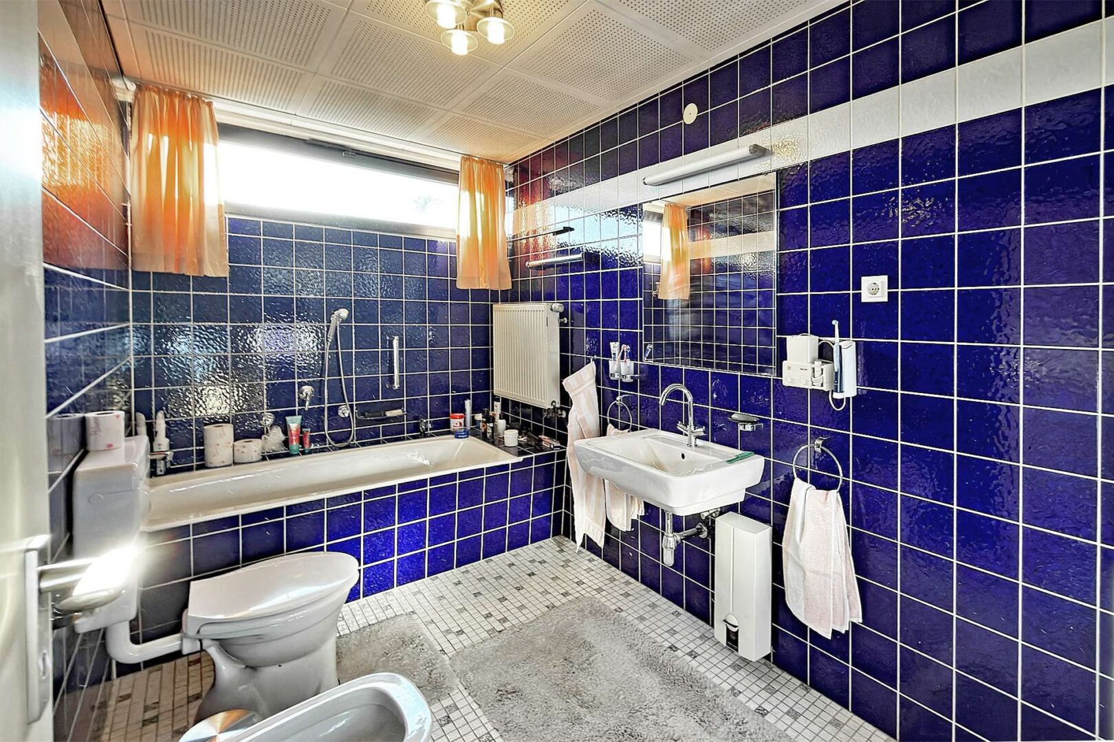 Rechter Hand finden Sie ein Tageslichtbad, ausgestattet mit einem WC, einem Waschbecken und einer Dusche.