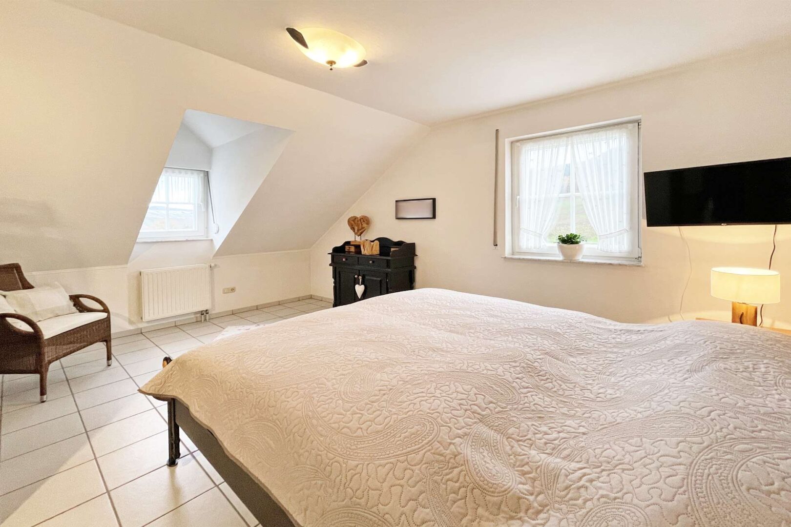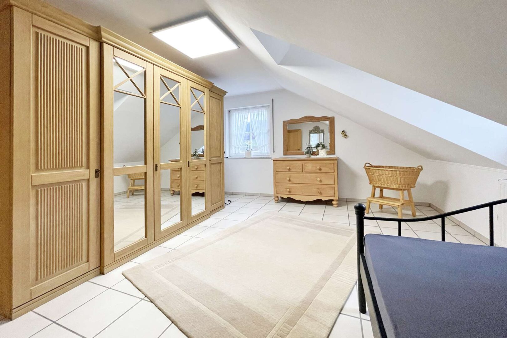 Über eine offene, massive Treppe gelangen Sie ins Obergeschoss. Hier stehen Ihnen drei, sehr gut geschnittene Schlafzimmer sowie ein weiteres Tageslichtbad mit Dusche und Badewanne zur Verfügung – perfekt für eine Familie mit mehreren Kindern. Ein zusätzlicher Abstellraum grenzt direkt an eines der Schlafzimmer und eignet sich daher ideal als begehbarer Kleiderschrank.
