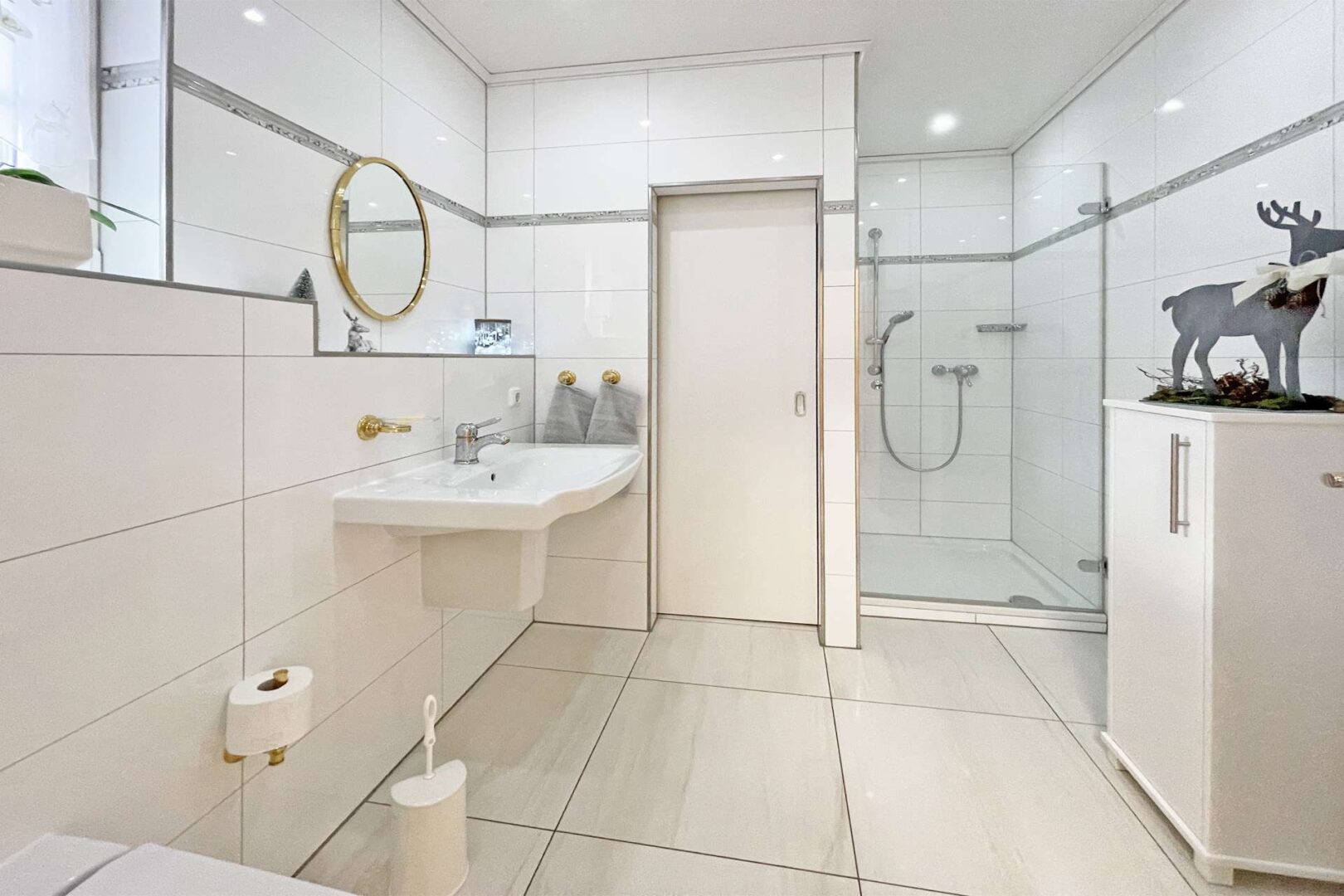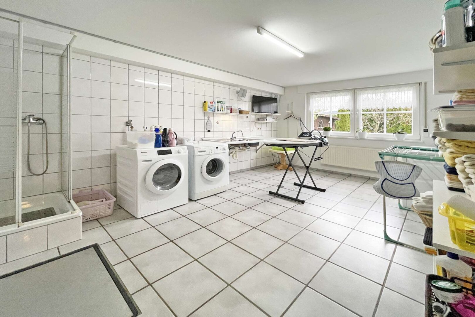 Das Kellergeschoss bietet vielfältige Nutzungsmöglichkeiten: Neben einem freundlichen Gästeraum finden Sie hier eine große Waschküche, einen praktischen Vorratsraum sowie den Technikbereich des Hauses. Die ins Kellergeschoss integrierte Garage ist großzügig bemessen und mit einem elektrischen Rolltor der Marke "Hörmann" ausgestattet.