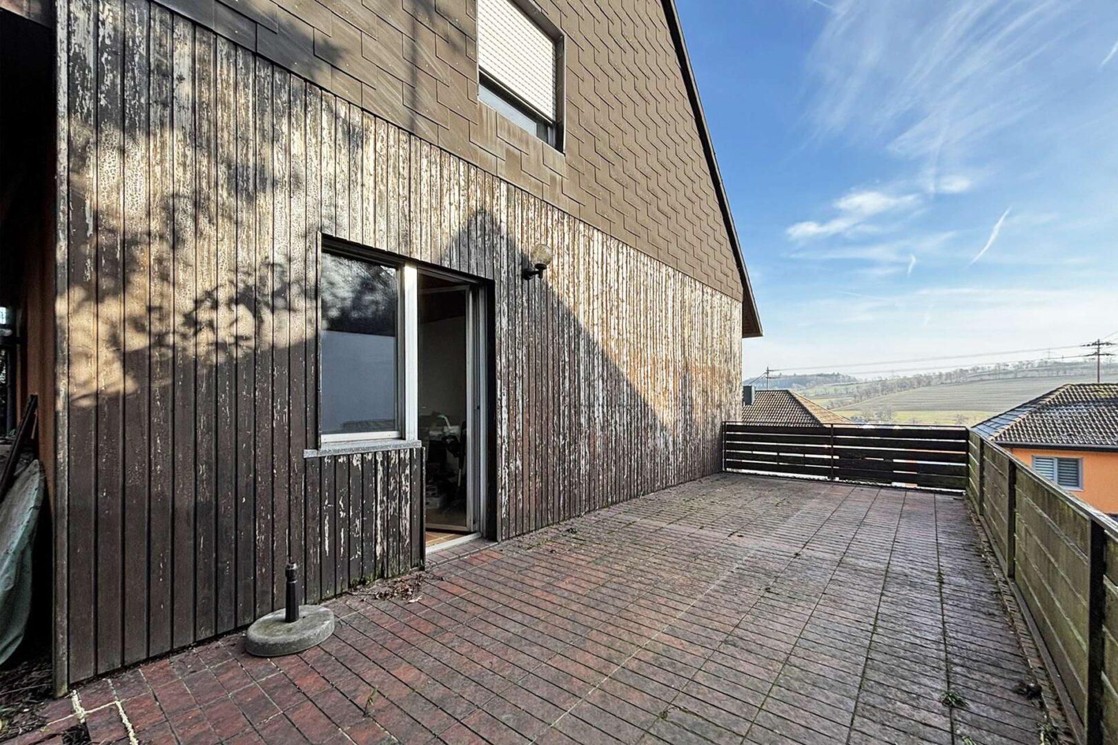 Vom Wohnbereich aus haben Sie Zugang zur Terrasse hinter dem Haus sowie in den Garten. Eine weitere, seitlich gelegene Terrasse eröffnet einen schönen Blick über Butzweiler.