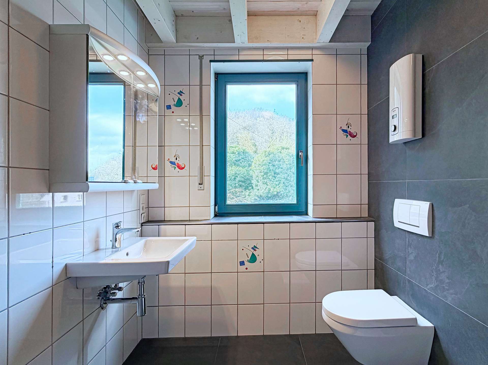 - Neue Armaturen und teilweise neue Fliesen im Bad