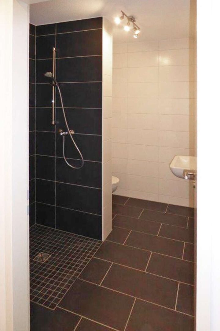 Ergänzt wird diese Wohneinheit durch ein innenliegendes, modern gefliestes Badezimmer mit Waschtisch, WC sowie einer bodengleiche Dusche.