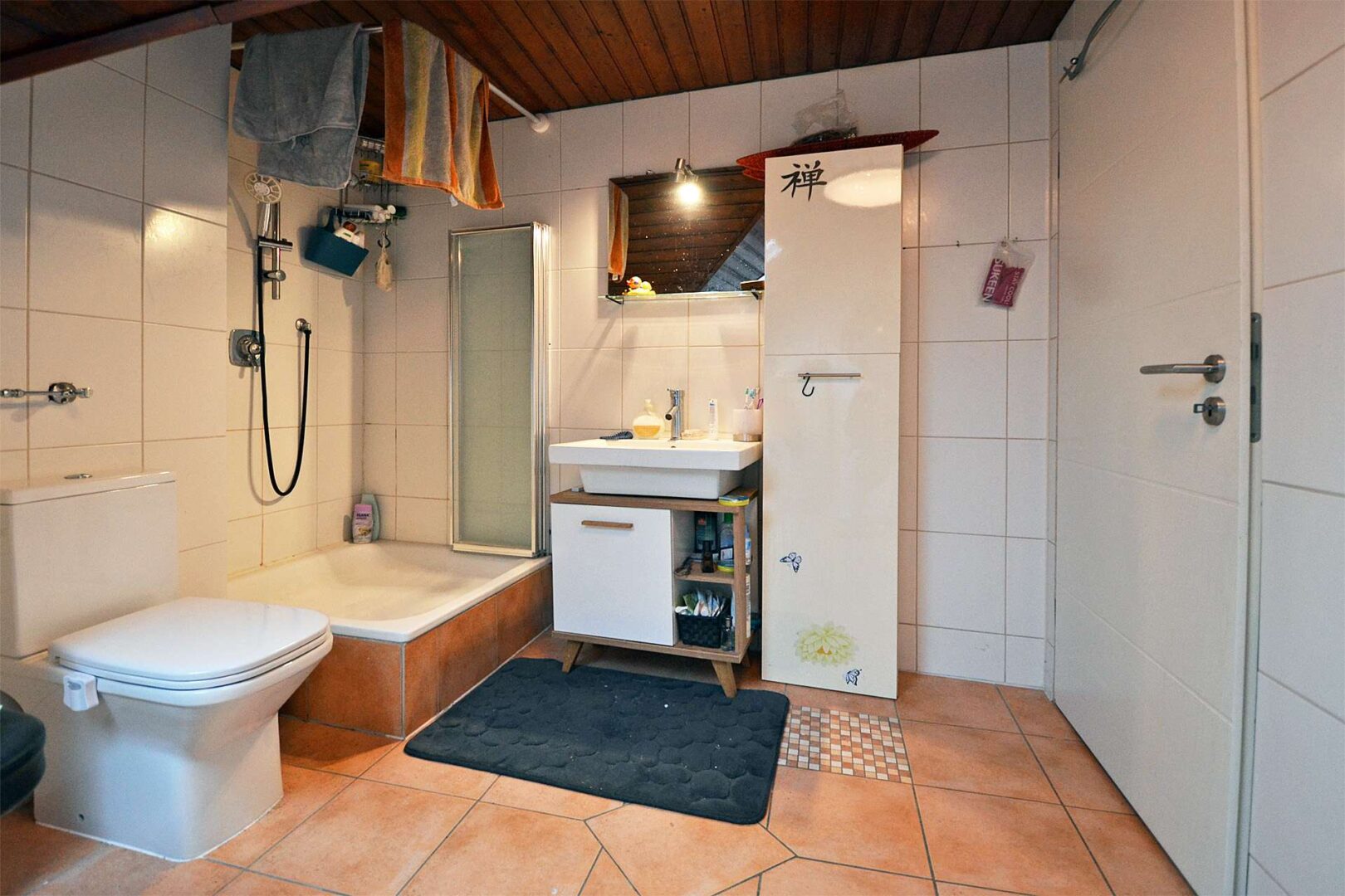 Das Tageslichtbad mit Dusche und Anschluss für die Waschmaschine rundet das Raumangebot überzeugend ab. Zusätzlich steht im Keller ein separates Abteil zur Verfügung.