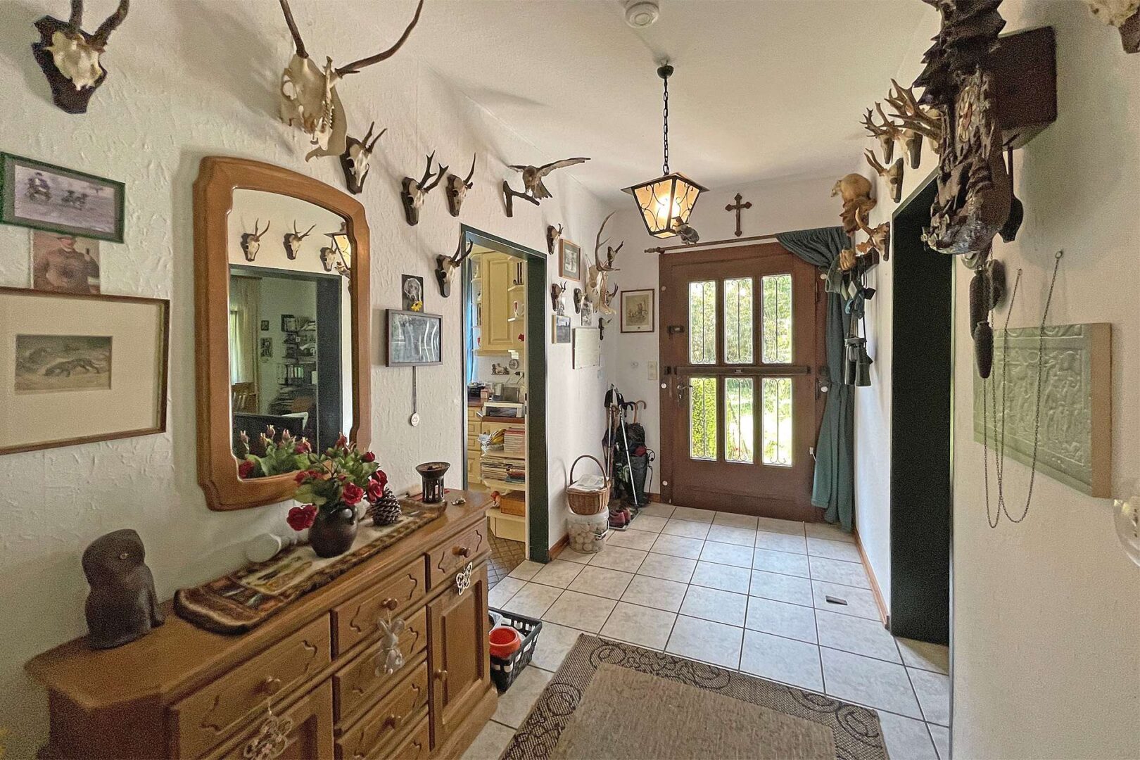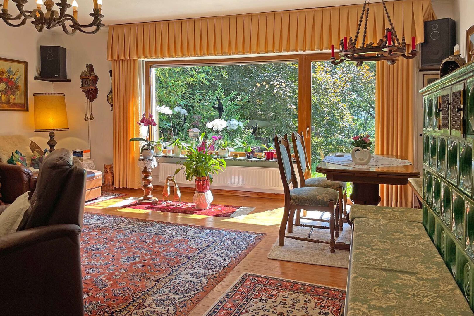 Genießen Sie hier die angenehmen Stunden des Jahres im Kreise Ihrer Lieben samt Blick auf die umliegende Natur und den beruhigenden Wald. Von hier aus haben Sie weiterhin einen großartigen Blick auf den Gartenbereich des Anwesens. Die Fenster mit großzügigen Maßen schaffen ein herrliches Lichtambiente.