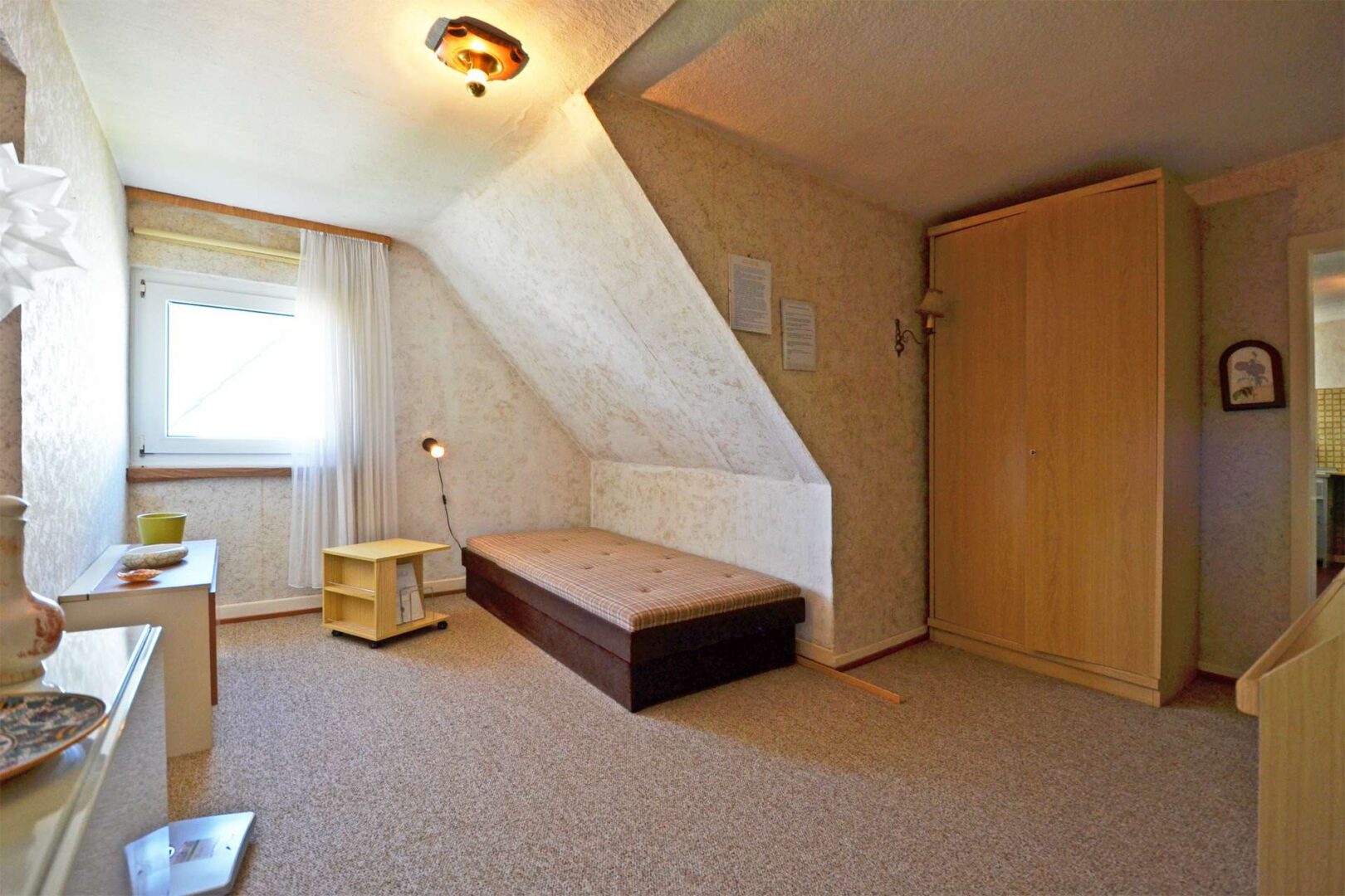 Hier erwartet Sie ein geräumiges Elternschlafzimmer mit Platz für ein Doppelbett und eine große Schrankwand. Ein weiteres Zimmer eignet sich hervorragend als Kinder- oder Gästezimmer, Büro oder Hobbyraum. Dahinter befindet sich die ehemalige Küche dieser Etage, die sich ideal zu einem dritten Schlafzimmer umgestalten lässt.