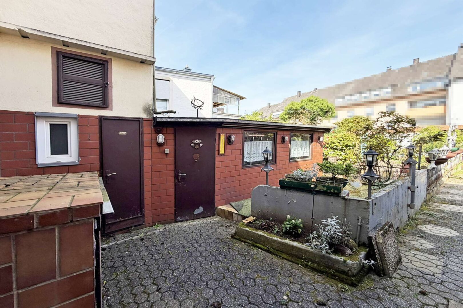 Der Innenhof verfügt zudem über eine Grube, in der sich früher die Öltanks befanden, dieser Raum kann ebenfalls als weiterer Stauraum genutzt werden. Als Highlight bietet Ihnen die Immobilie im Innenhof in zentraler Stadtlage einen kleinen Garten mit einer Terrasse und einem Grillplatz. Vom Hof aus gelangen Sie nochmals in eine Ihrer beiden Garagen, rechts davon findet sich noch ein weiterer Lagerraum für Gartengeräte oder Fahrräder.