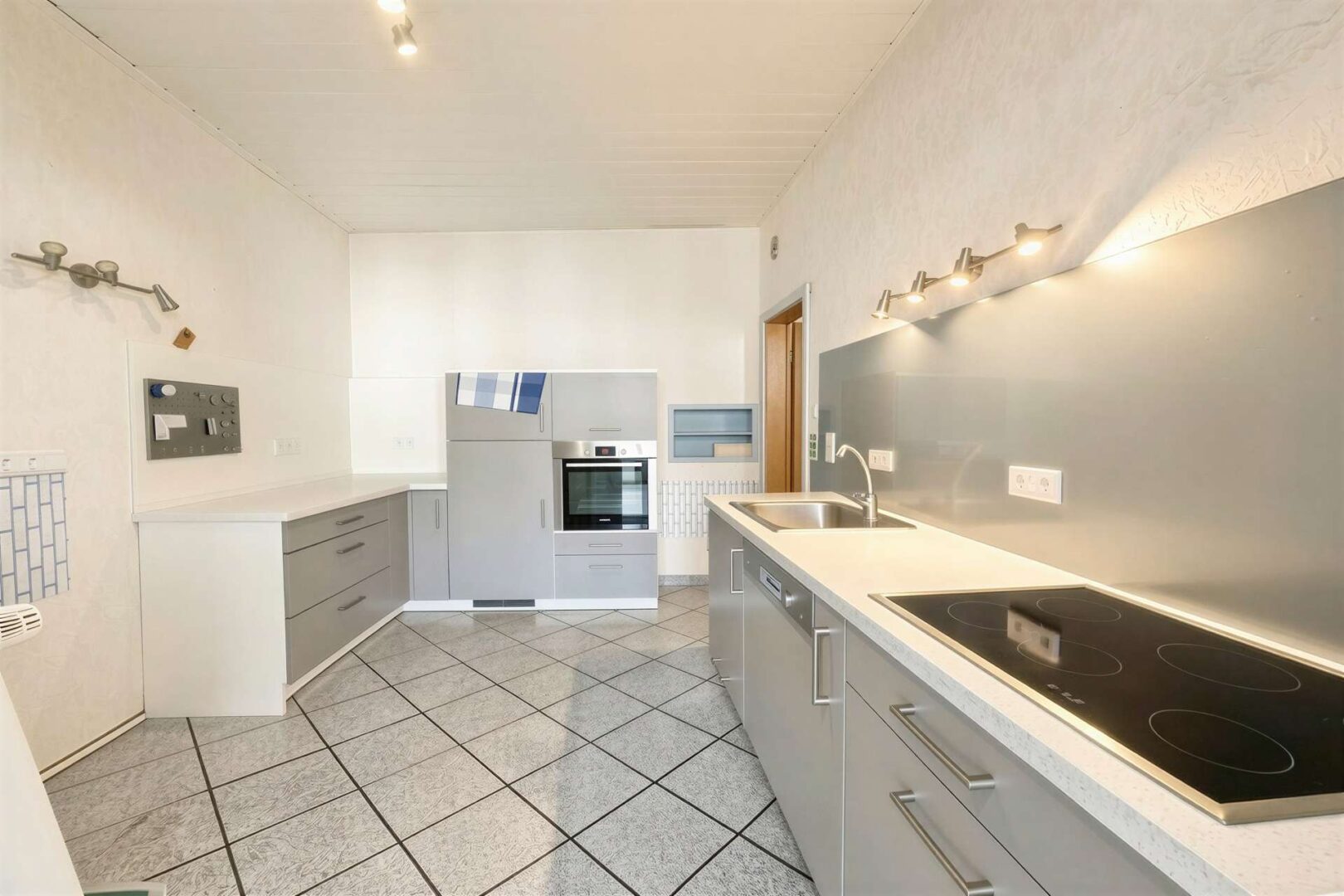 Die zeitlose Einbauküche ist inklusive der Elektroeinbaugeräte im Kaufpreis enthalten.