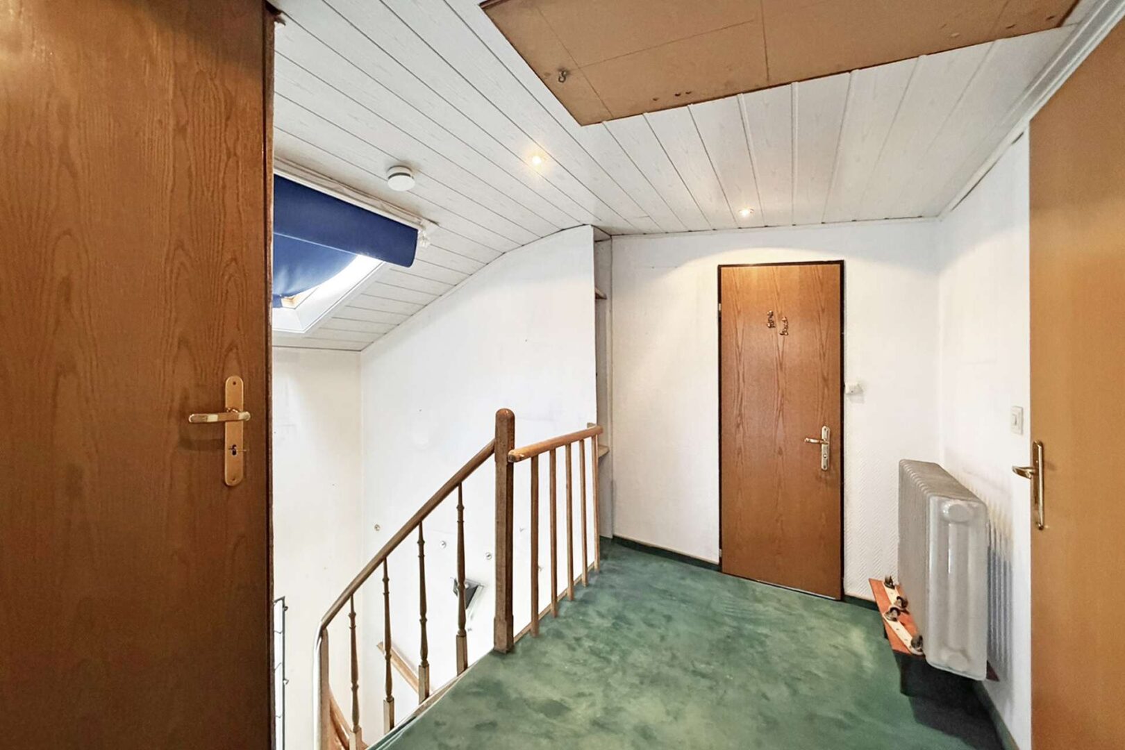 Zurück in der Diele des Obergeschosses gelangen Sie über das zentrale Treppenhaus in das Dachgeschoss des Hauses.