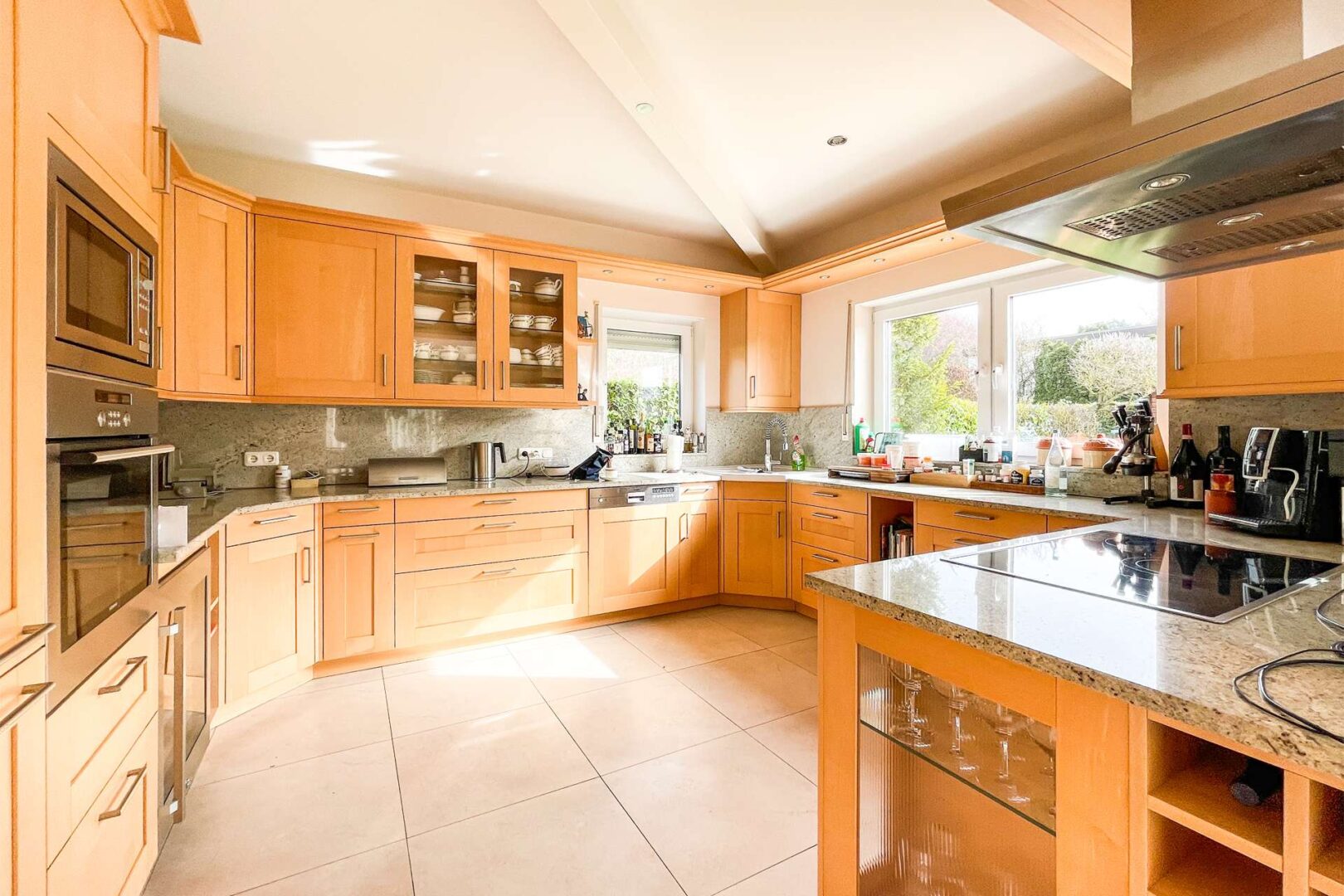 Ergänzt wird das Raumangebot durch einen klassischen Kellerabstellraum, einen Technikraum sowie einen stilvollen Weinkeller. Über einen kleinen Zwischenflur gelangen Sie schließlich auch von dieser Ebene direkt in die großzügige Doppelgarage, was den durchdachten Grundriss dieses Hauses nochmals unterstreicht.