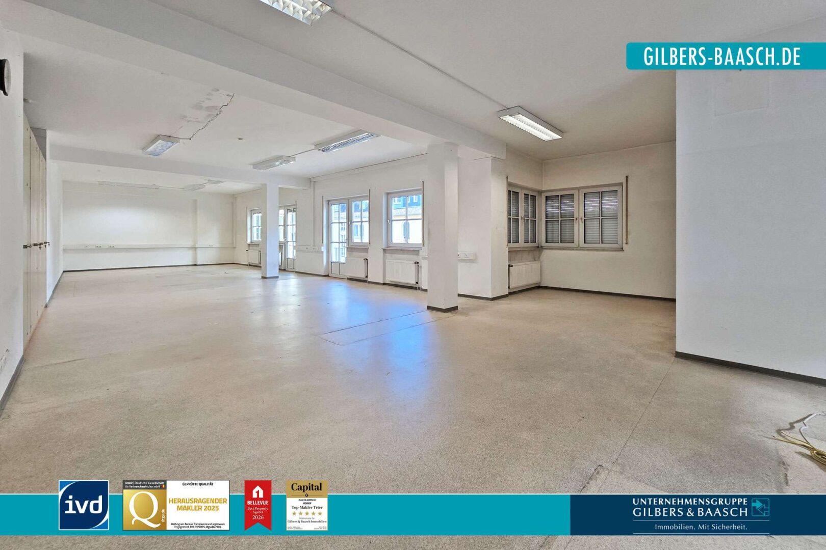 Zur Vermietung steht eine großzügige Bürofläche von ca. 350 m² in einem zentral gelegenen Geschäftshaus in der Engelstraße in Trier. Die Fläche erstreckt sich über das 1. und 2. Obergeschoss und kann bei Bedarf in zwei separat nutzbare Einheiten mit ca. 144 m² und ca. 206 m² aufgeteilt werden.