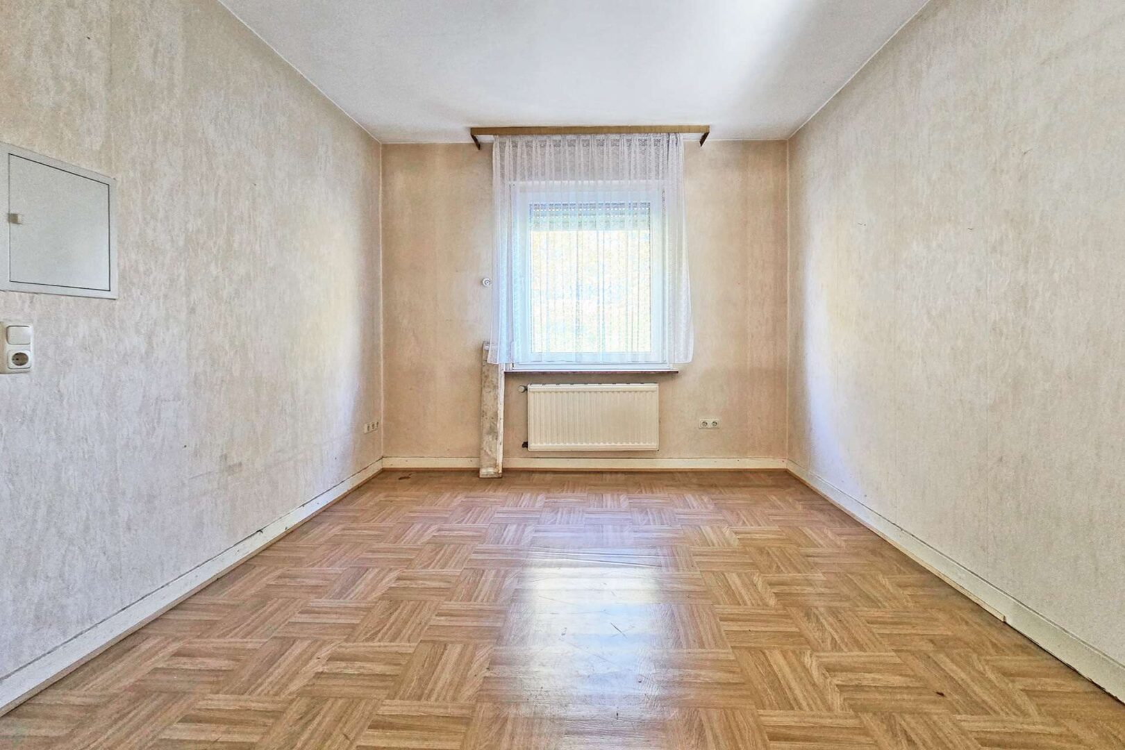 Durch einen Durchbruch im Wohnzimmer gelangen Sie im Erdgeschoss in die linke Gebäudehälfte, in den nächsten Raum, welcher ideal als Esszimmer dienen könnte. Von diesem Durchgangszimmer gelangen Sie in einen weiteren Raum, der als Küche für die linke Gebäudehälfte dienen kann.