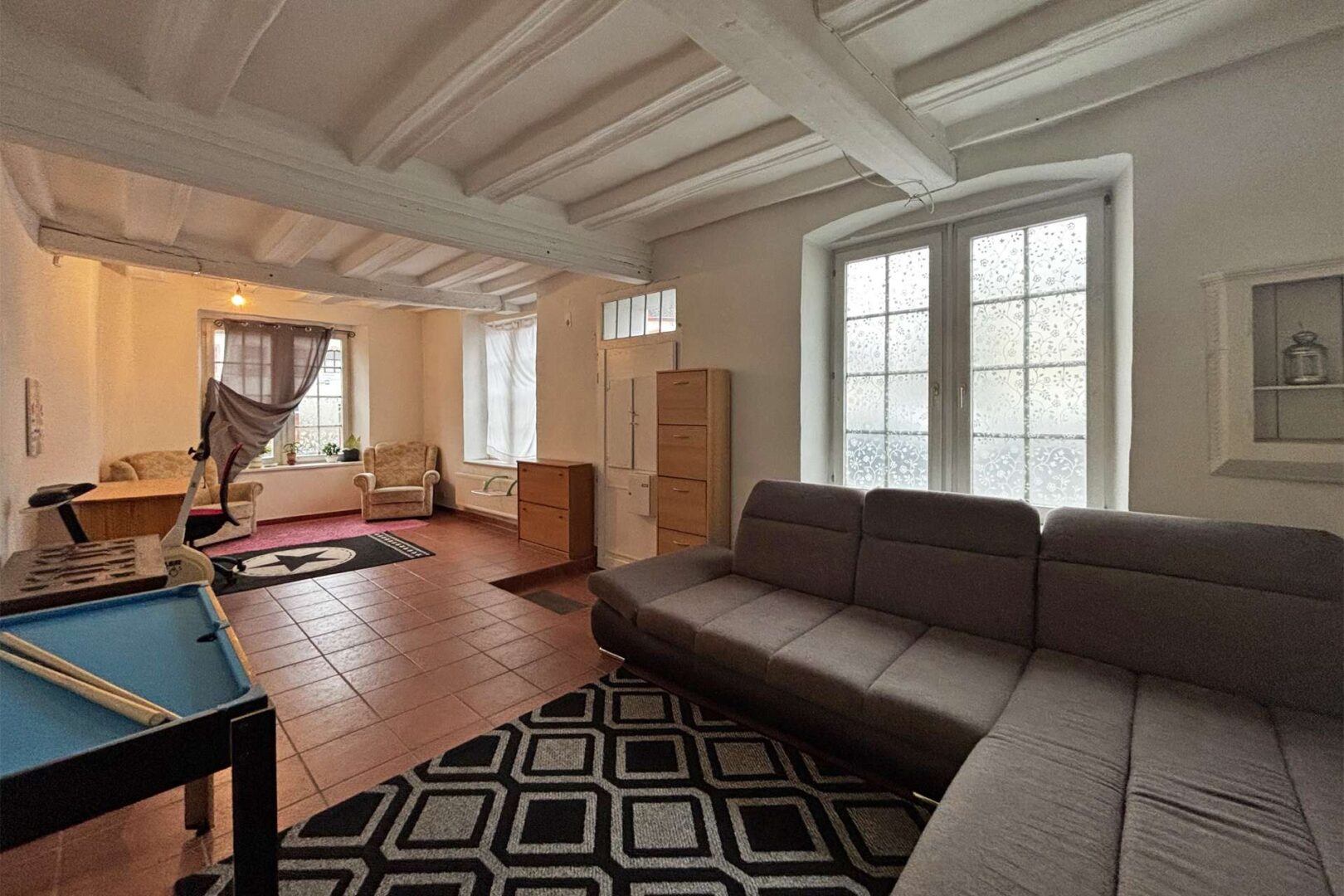 Die Immobilie wurde um 1579 erbaut, in den letzten Jahren teilsaniert bzw. renoviert und bietet Ihnen circa 200 m² Wohnfläche im gesamten Haus. Nutzen Sie die Möglichkeit, die Immobilie als Zweifamilienhaus zu nutzen, steht Ihnen im Erdgeschoss ein separater Eingang und nach überschaubaren Umbaumaßnahmen eine 1- bis 2-Zimmer-Küche-Bad-Wohnung zur Verfügung. Die zweite Wohneinheit erstreckt sich über den Rest des Hauses und verfügt ebenfalls über einen eigenen Eingang.