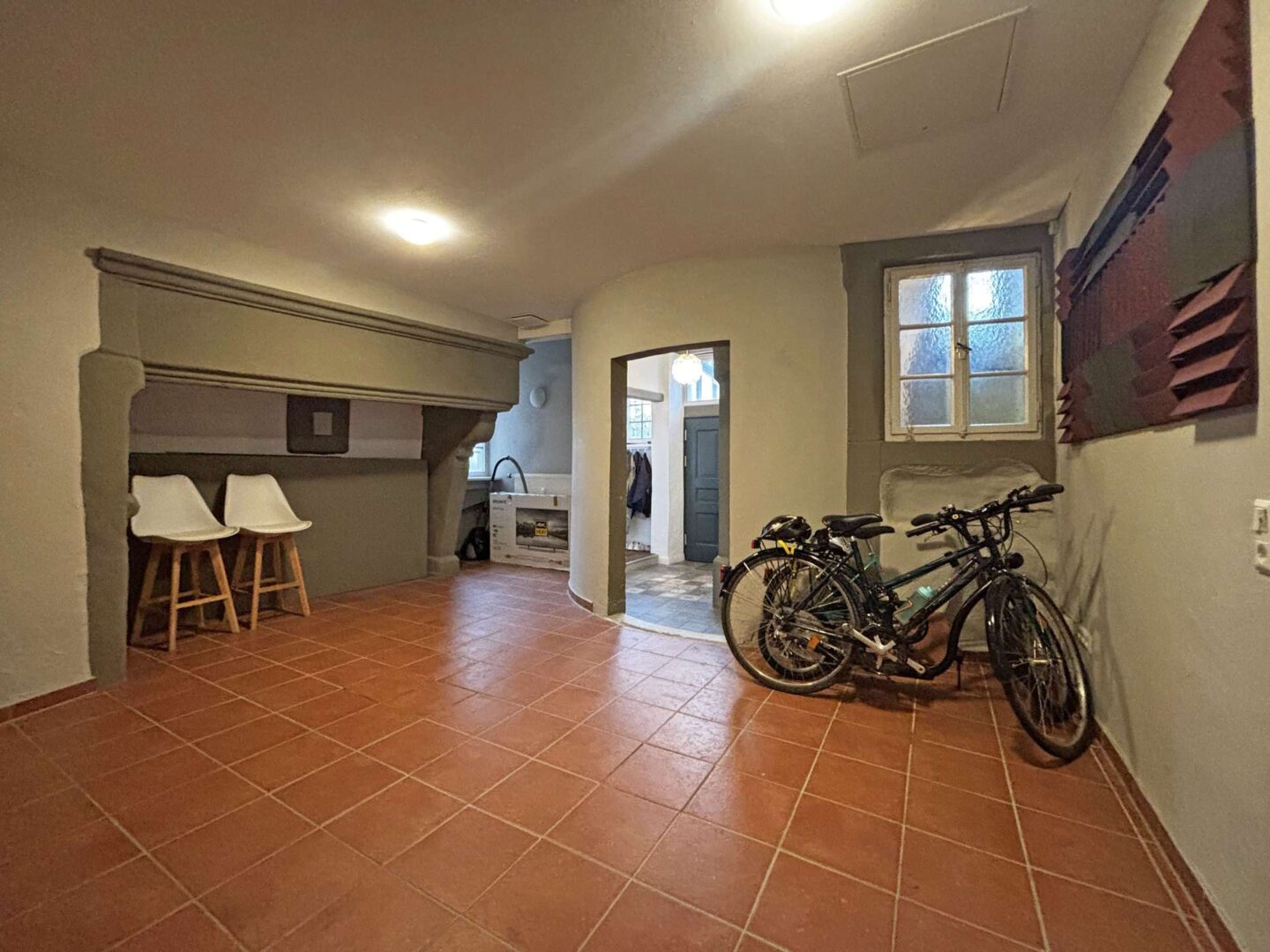 Sie betreten einen großzügigen Raum mit einem historischen alten Backofen. Über den kleinen Flur gelangen Sie in den Hauswirtschaftsraum, das Bad mit Dusche und WC und das Gästebad mit WC und Pissoir. Die Bäder verfügen jeweils über eine Lüftung.