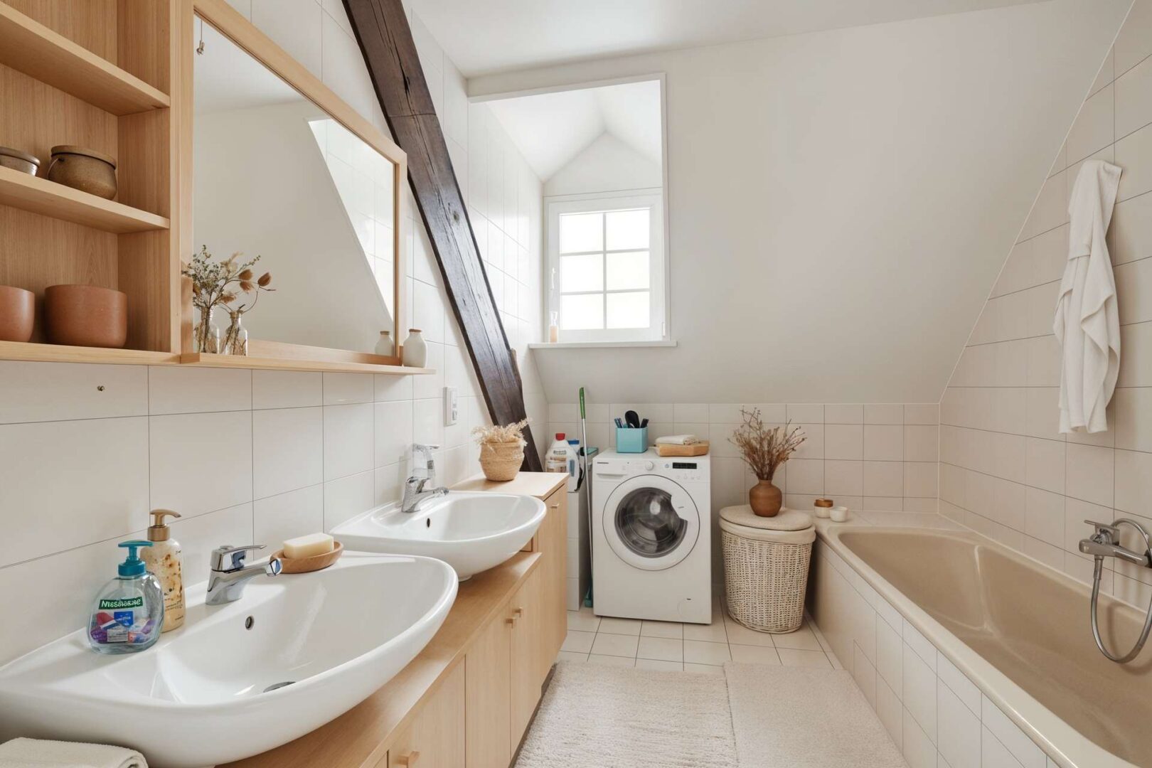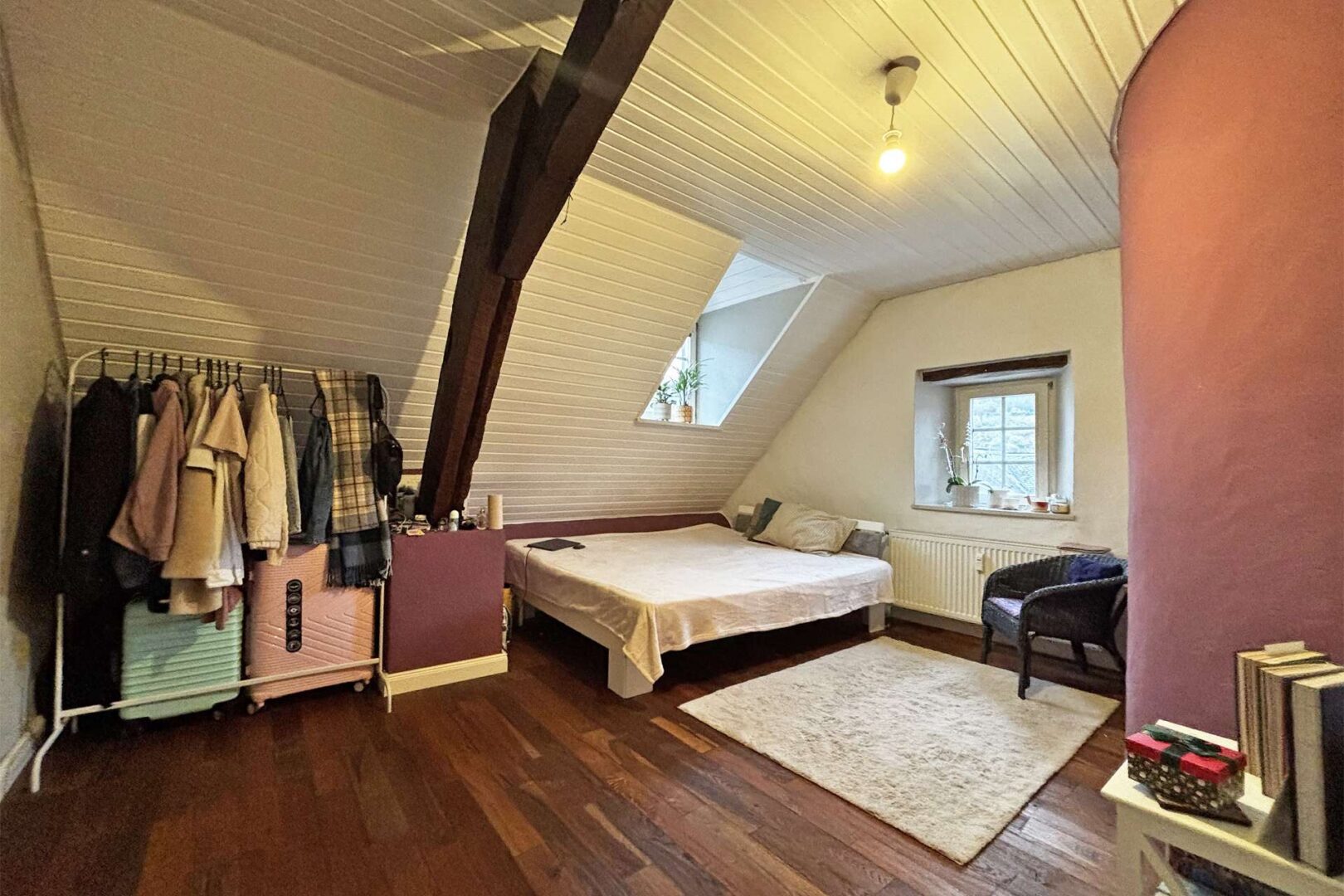 Im zweiten Obergeschoss erwarten Sie drei Zimmer und ein Bad, zu erreichen über die Wendeltreppe. Bei den umfassenden Renovierungen nach 2012 wurden eines der Zimmer und das Bad nicht berücksichtigt, diese stammen daher aus älteren Jahren. Von hier aus lässt sich die Dachbodenleiter ausfahren und Sie verfügen über zusätzlichen Stauraum im Dachspeicher.