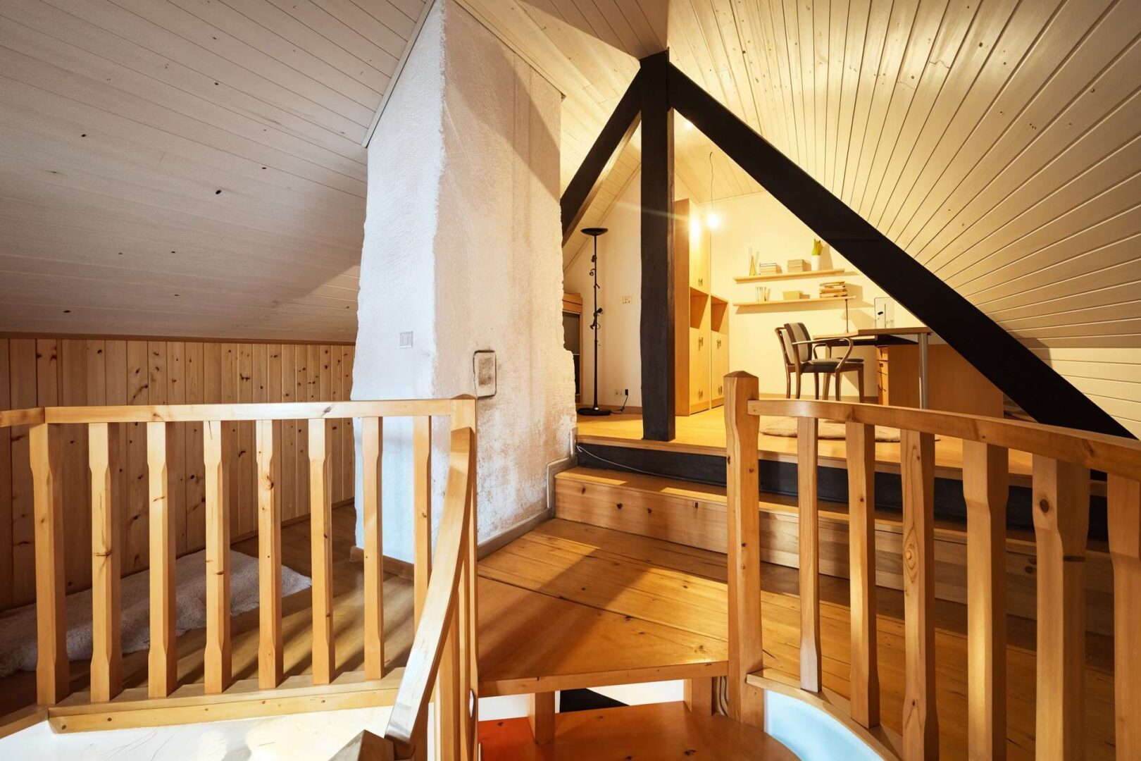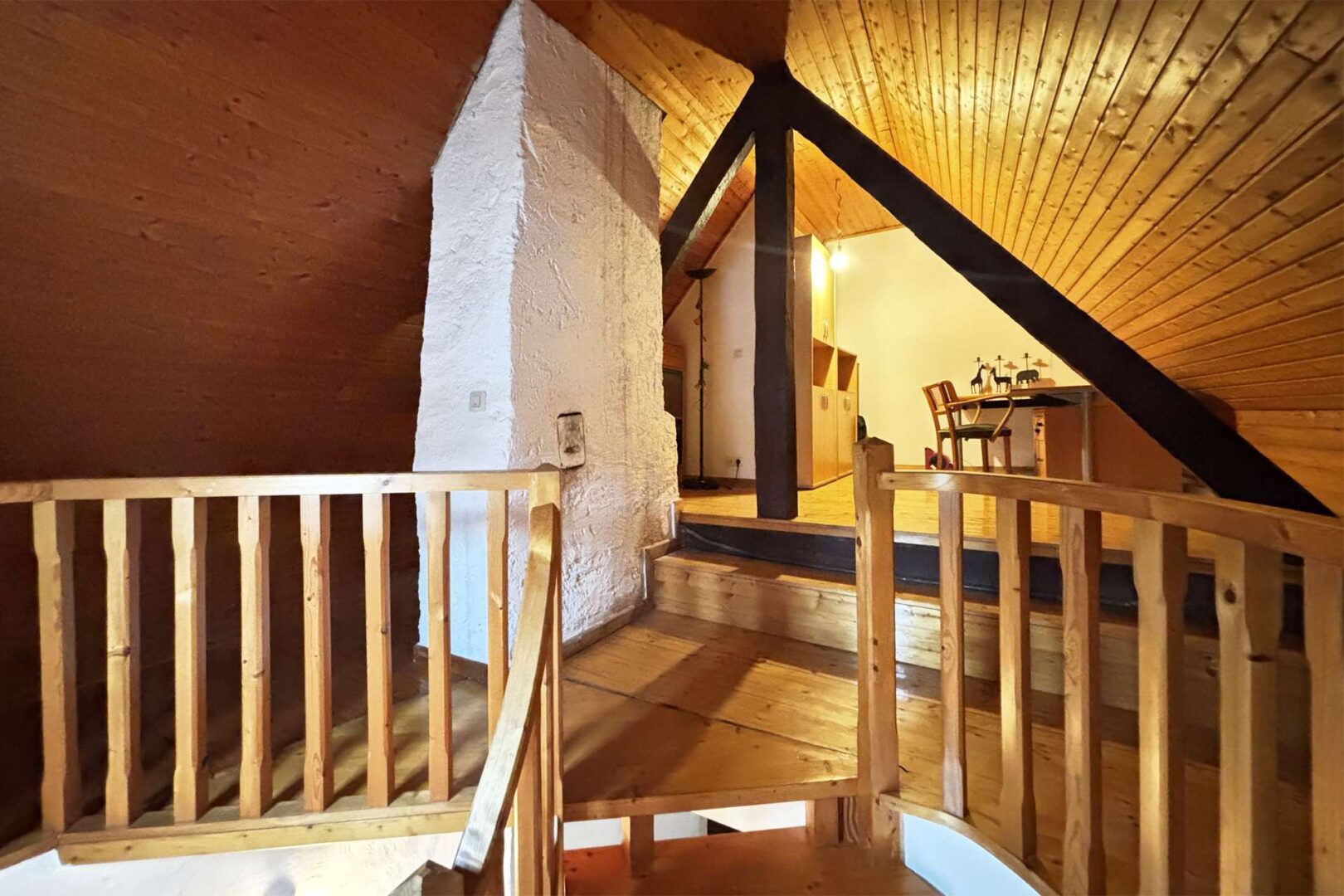 Ein weiterer Teil des Dachgeschosses ist über die Wendeltreppe zu erreichen und wurde damals zum Spielzimmer oder Büro ausgebaut.