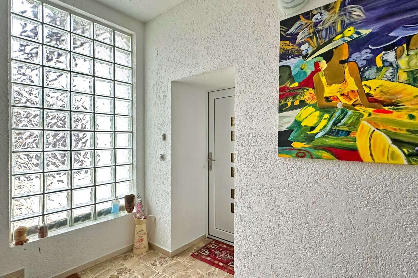 Rechter Hand der Diele gelangen Sie über eine Stufe in einen kleinen ca. 4,79 m² großen Flur, dieser verbindet Diele, Bad und Wohnzimmer miteinander.