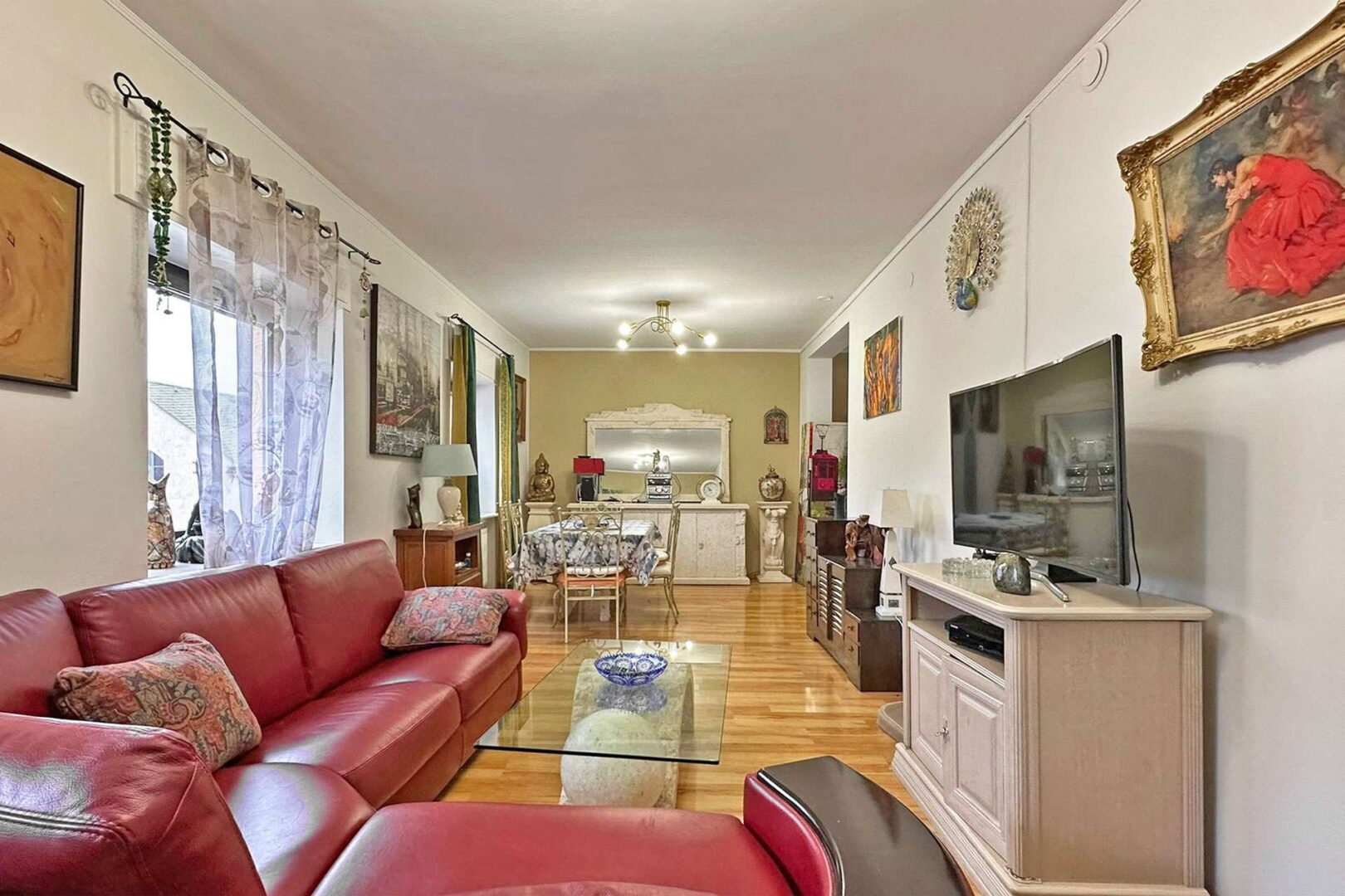 Der Raum bietet Ihnen ausreichend Platz für eine Wohnlandschaft, einen großen Esstisch und Sideboards.
