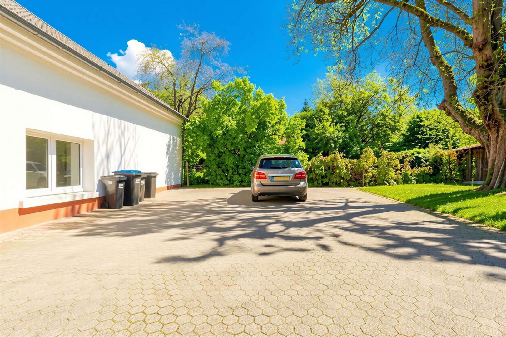 Über die hervorragende Infrastruktur mit zahlreichen Verkehrsanbindungen erreichen Sie das Wohnhaus. Über eine seitliche Einfahrt befahren Sie den Hof des Gebäudes und parken Ihre Fahrzeuge bequem auf einem Ihrer zwei Außenstellplätze.